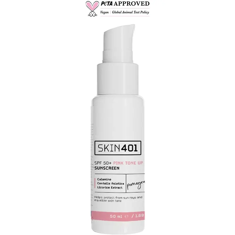 Skin401 Pink Tone Up SPF 50+ Sunscreen - Güneş Koruyucu 50ml: Aqua, Ethylhexyl Methoxycinnamate, C12-15 Alkyl Benzoate, Cetearyl Alcohol, Glycerin, Bis-Ethylhexyloxyphenol Methoxyphenyl Triazine, Glyceryl Stearate, Ethylhexyl Triazone,Caprylic/Capric Triglyceride, Methylene Bis-Benzotriazolyl Tetramethylbutylphenol, Ceteareth-25,Calamine, Stearic Acid, Potassium Cetyl Phosphate, Ceteareth-20, Punica Granatum Seed Extract,Glycyrrhiza Glabra Root Extract, Centella Asiatica Leaf Extract, Propylene Glycol, Phenoxyethanol,Panthenol, Ceteareth-12, Cetyl Palmitate, Decyl Glucoside, Benzoic Acid, Dehydroacetic Acid, SodiumHydroxide, Xanthan Gum, Lactic Acid, Ethylhexylglycerin, Tetrasodium EDTA.