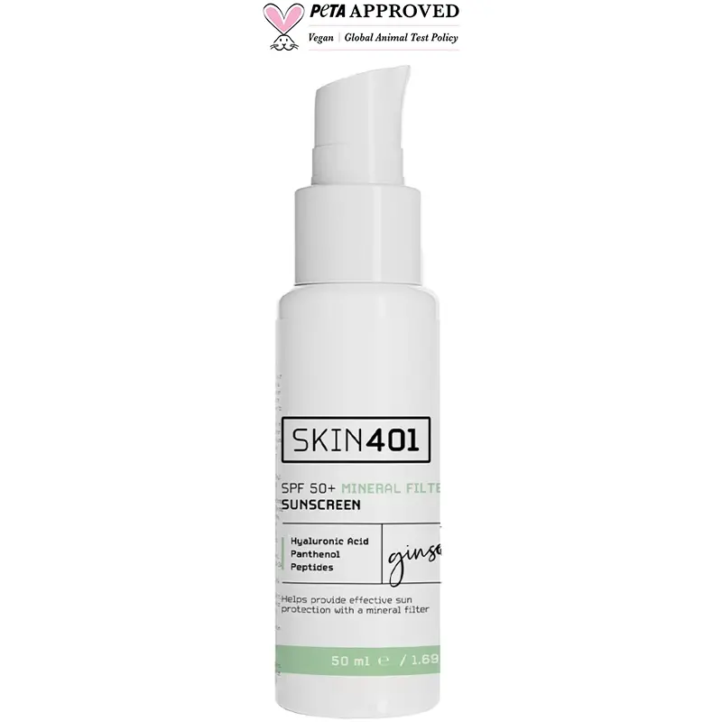 Skin401 Mineral Filter SPF 50+ Sunscreen - Mineral Güneş Koruyucu 50ml: Aqua, Zinc Oxide, Glycerin, C12-15 Alkyl Benzoate, Caprylic/Capric Triglyceride, Stearic Acid, Sodium Hyaluronate, Potassium Cetyl Phosphate, Inulin Lauryl Carbomate, Panax Ginseng RootExtract, Acetyl Hexapeptide-8, Panthenol, Allantoin, Sodium Benzoate, Potassium Sorbate, XanthanGum, Lactic Acid, Tetrasodium EDTA, Caprylyl Glycol, Phenoxyethanol, Ethylhexylglycerin, SodiumHydroxide.