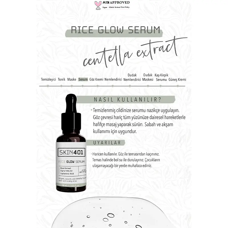 - Pirinç özlü aydınlatıcı etkili bakım serumudur.