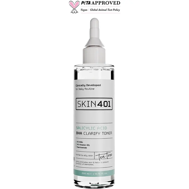 Skin401 Salicylic Acid BHA Clarify Toner - Gözenek ve Siyah Nokta Karşıtı Tonik 200ml: Aqua, Niacinamide, PPG-26-Buteth-26, Glycerin, Salicylic Acid, Aloe Barbadensis Leaf Juice, Panthenol, Melaleuca Alternifolia Leaf Extract, Arctium Lappa Root Extract, Lavandula Angustifolia Flower Extract, Achillea Millefolium Extract, Arnica Montana Flower Extract, Nasturtium Officinale Flower/Leaf Extract, Juniperus Communis Fruit Extract, Benzyl Alcohol, Sodium Benzoate , Citric Acid, Potassium Sorbate, Propylene Glycol, PEG-40 Hydrogenated Castor Oil, Benzoic Acid, Phenoxyethanol, Dehydroacetic Acid, Tetrasodium EDTA, Ethylhexylglycerin.
