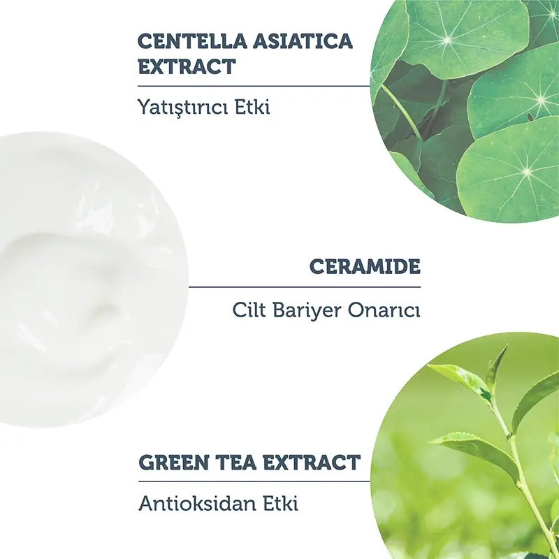 - İçerdiği Centella Asiatica, Ceramide, yeşil çay özü sayesinde cilt bariyerini güçlendirmeyi destekler.