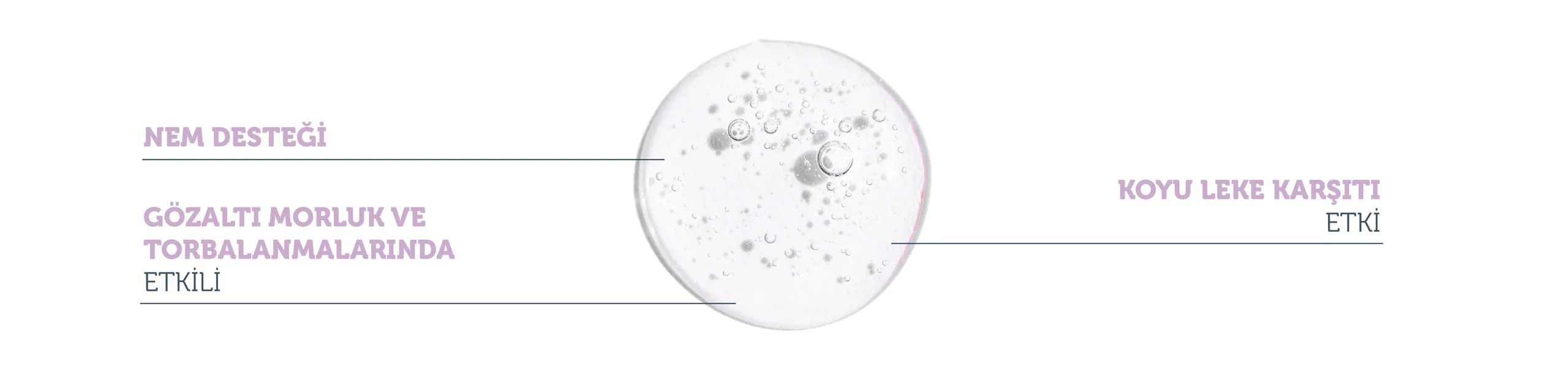 - Geliştirilmiş içeriği göz kırışıklık görünümünü gidermeyi destekler.