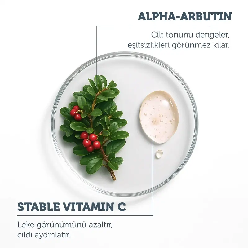 - İçeriğindeki ve vitaminini ve Alpha Arbutin leke görünümünü en aza indirgemeye yardımcı olur.