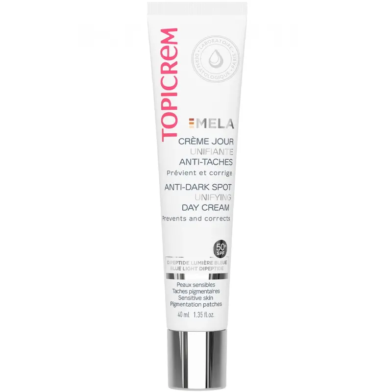 Topicrem Mela Corrective Day Cream SPF 50- Hassas ve lekeli ciltler için geliştirilmiş gündüz bakım kremidir.
