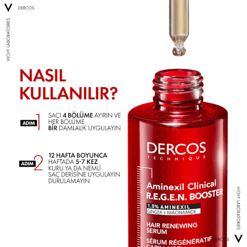 - Vichy Dercos saç dökülmesine karşı şampuan ile birlikte kullanılması tavsiye edilmektedir.