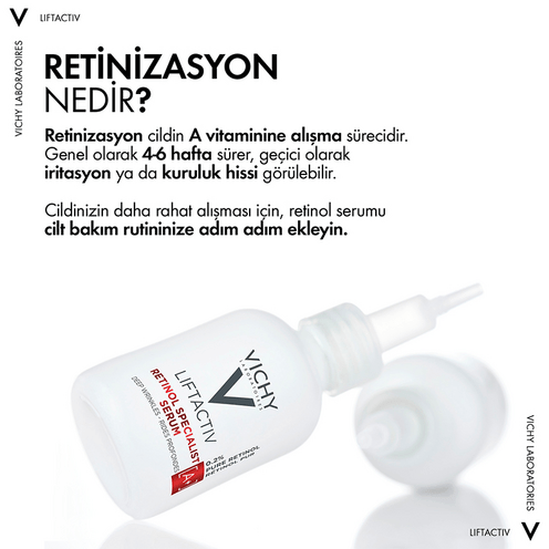 - Tüm yaşlanma belirtilerine karşı geliştirilmiş retinol içerikli cilt bakım serumudur.